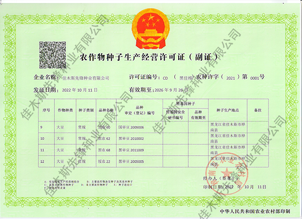 走進(jìn)我們 COME INTO US 您現(xiàn)在的位置:網(wǎng)站首頁 > 走進(jìn)我們 >資質(zhì)榮譽(yù) 公司簡介 企業(yè)文化 領(lǐng)導(dǎo)致辭 資質(zhì)榮譽(yù) 營業(yè)執(zhí)照副本 農(nóng)作物種子生產(chǎn)經(jīng)營許可證(主證) 農(nóng)作物種子生產(chǎn)經(jīng)營許可證(副證) 農(nóng)作物種子生產(chǎn)經(jīng)營許可證(副證) 農(nóng)作物種子生產(chǎn)經(jīng)營許可證(副證) 農(nóng)作物種子生產(chǎn)經(jīng)營許可證(副證) 共32條記錄 當(dāng)前為第1頁/共6頁上一頁1234...6下一頁